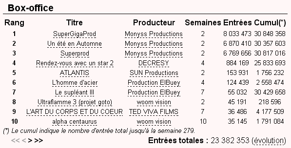 Suivez, semaine par semaine, les entrées de votre film au box-office...